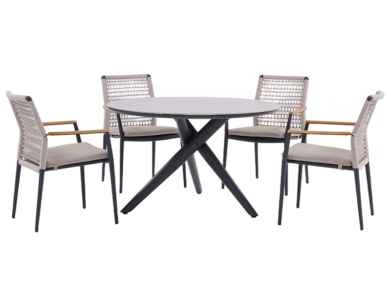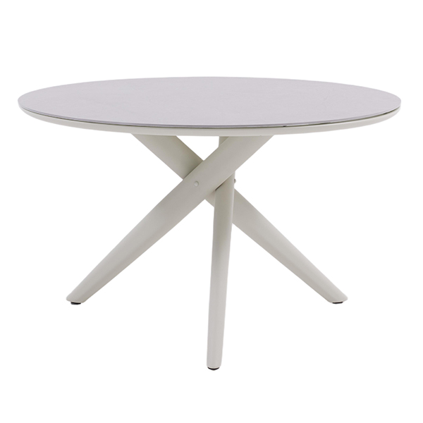 This round table embodies the essence of Scandinavian modernism. Its simple lines and practical elegance are perfectly combined to create a classic yet modern masterpiece. The round table is crafted with meticulous detail work, and its spacious, smooth tabletop is made of soft, matte light gray fired stone, creating a serene atmosphere reminiscent of the Nordic morning, providing a neutral base for any interior color scheme. The notable feature of the round table is its unique X-shaped tripod base, made of a lightweight but sturdy powder-coated aluminum, with a uniform white surface. This design not only offers excellent stability but also creates a light and dynamic feeling, as if the table is gently suspended on the floor. The Aether round table is a perfect example of minimalist design. Its simple shape and single color make it a versatile center piece, suitable for both bright, airy dining rooms and fashionable urban apartments or sunny greenhouses. Whether used as a dining table for family gatherings or as a signature coffee table in modern home spaces, it can enhance the beauty of any environment with its understated refined style and European design tradition.