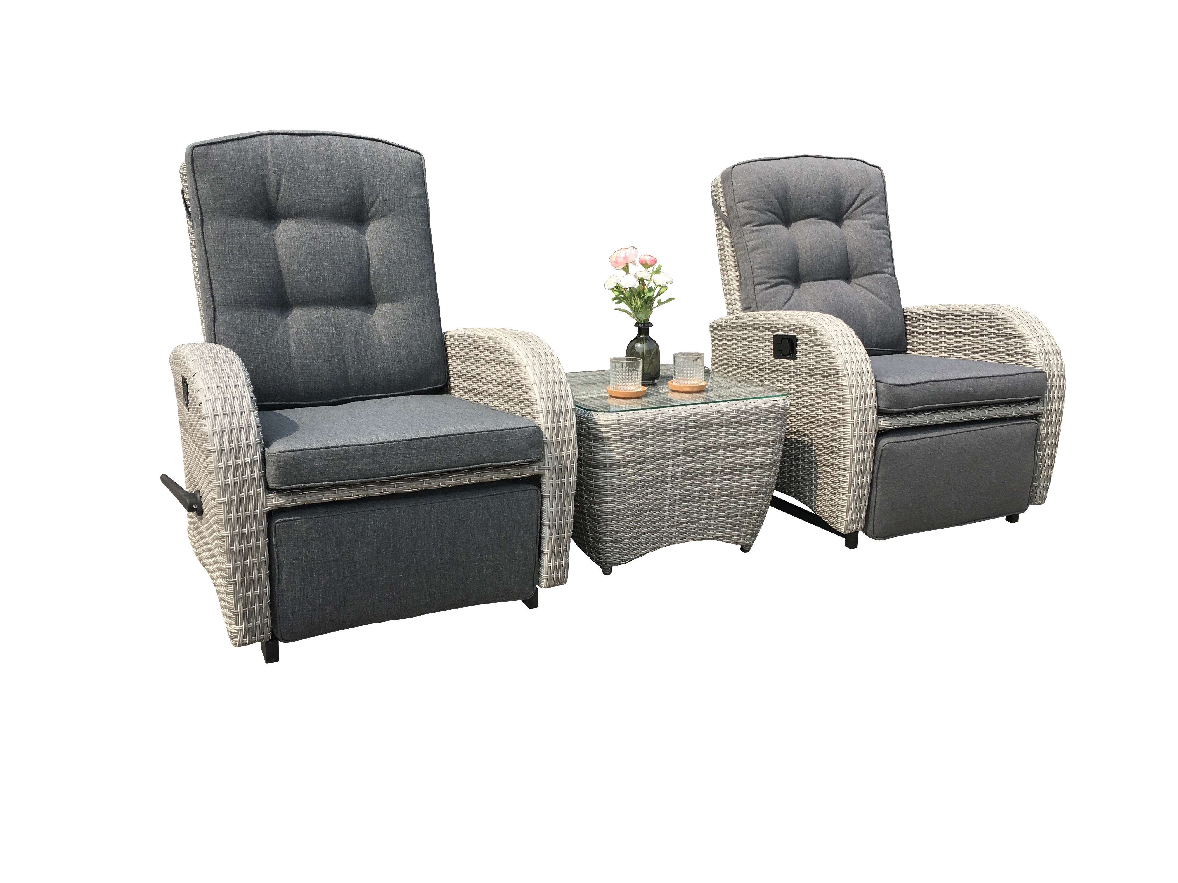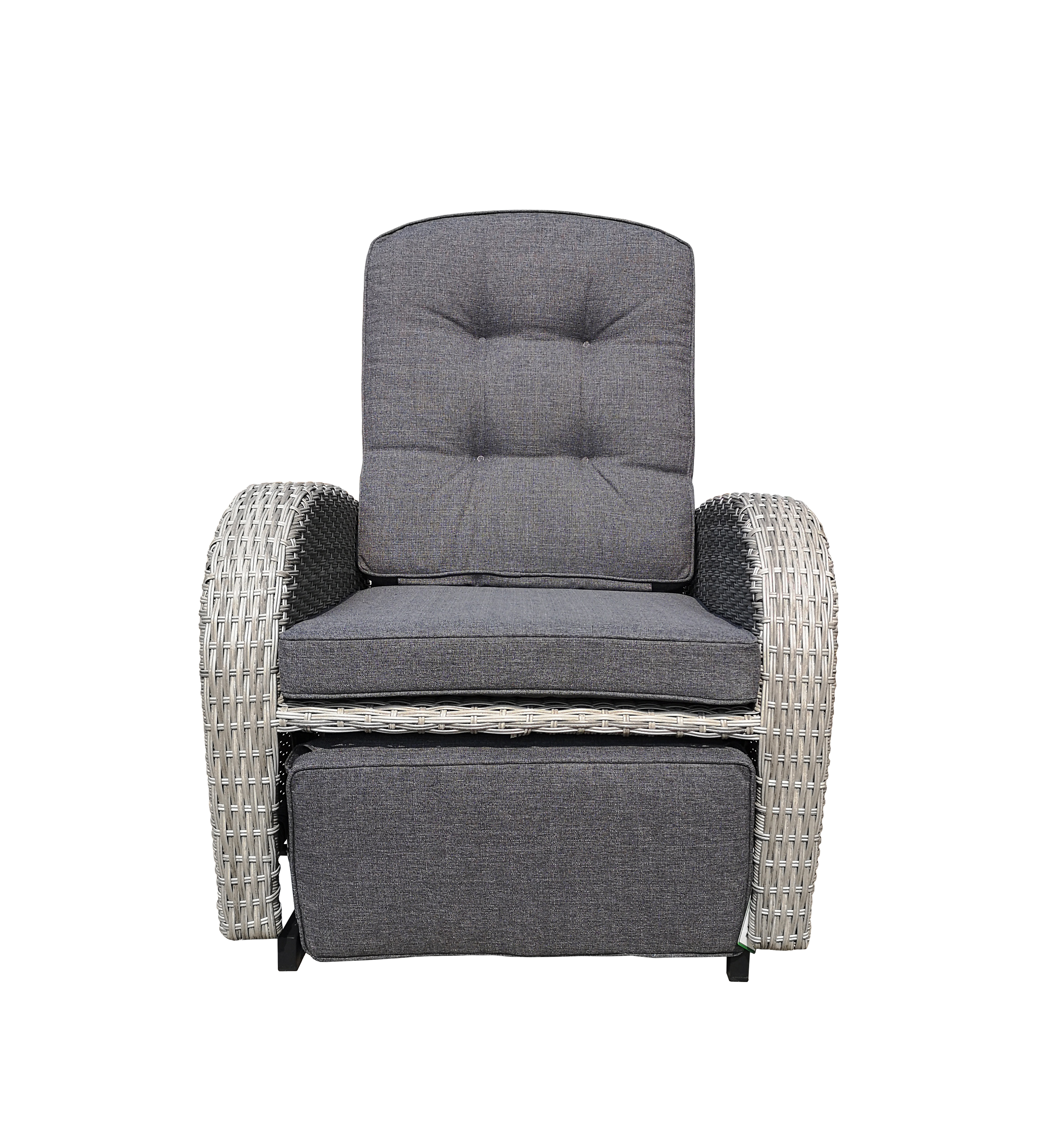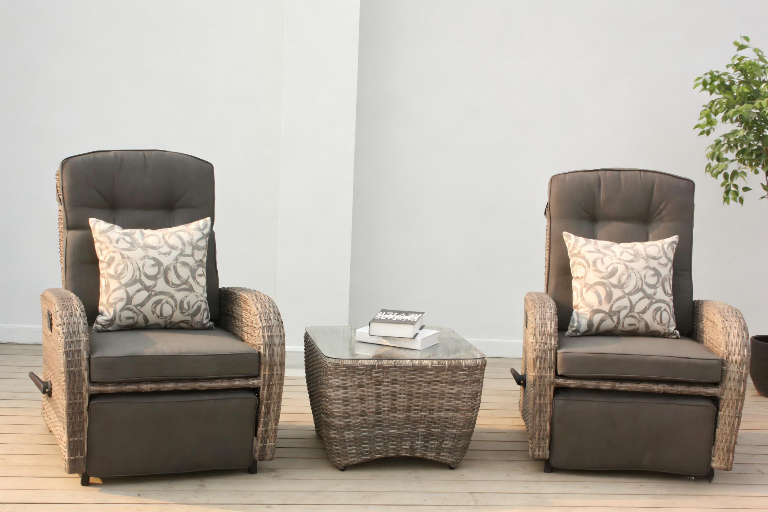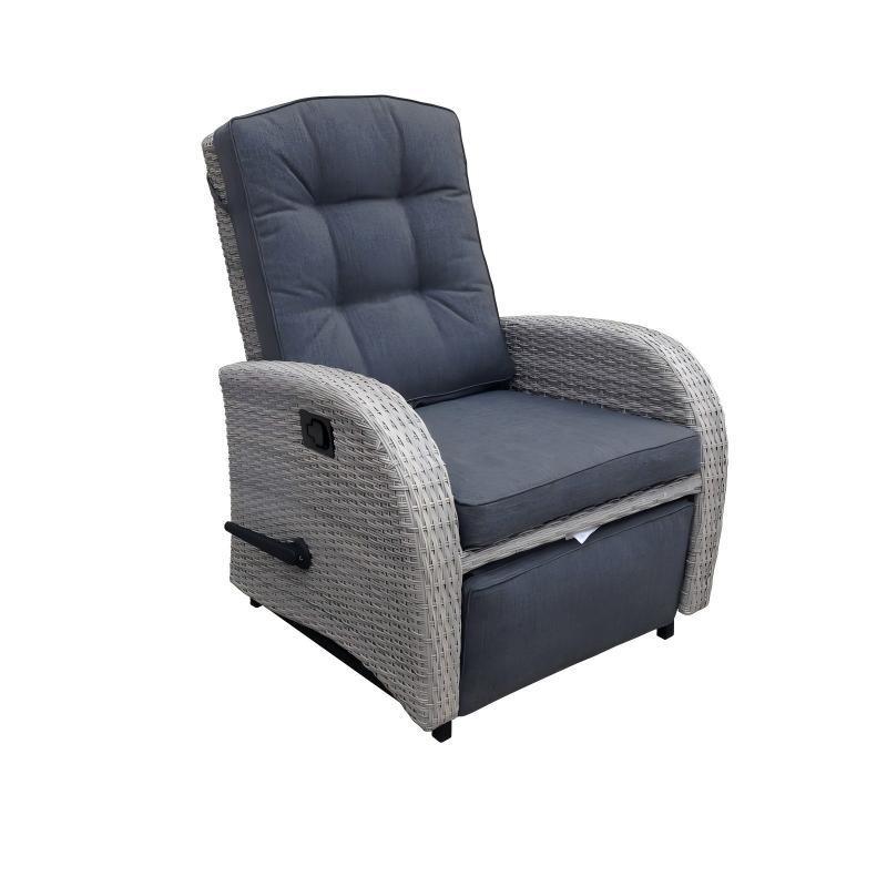 The Bromo Lounge Recliner With Footrest is equipped with a foot pedal that can be extended at any time. The extension operation can be performed using the switch on the right side of the chair. It can stretch your legs and offer true relaxation! When it is not suitable, it can be placed under the chair to save space. This rattan chair features all-weather wicker and a sturdy steel frame, capable of withstanding up to 1,000 hours of ultraviolet radiation, ensuring long-lasting durability and a bright appearance. It can be paired with a side table with tempered glass on the top, which is very suitable for daily relaxation.