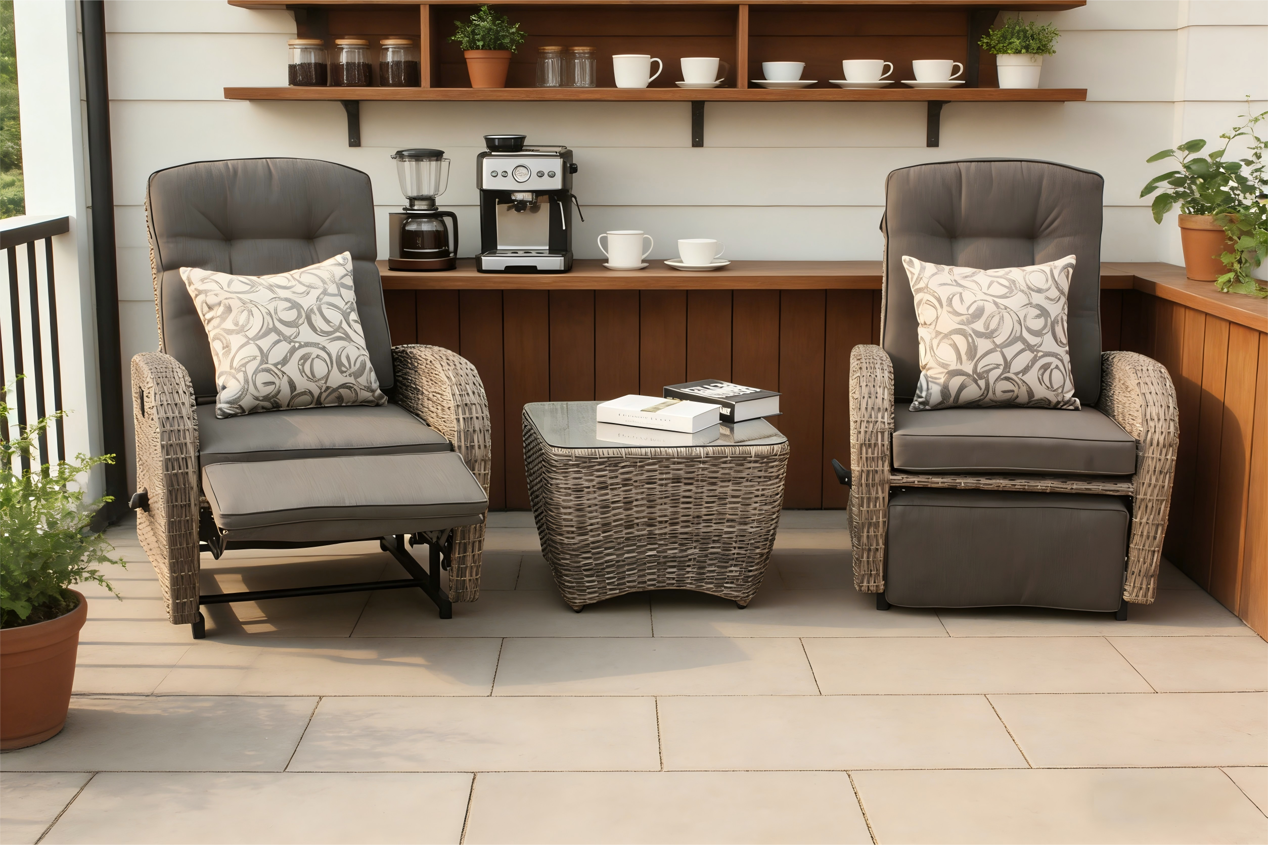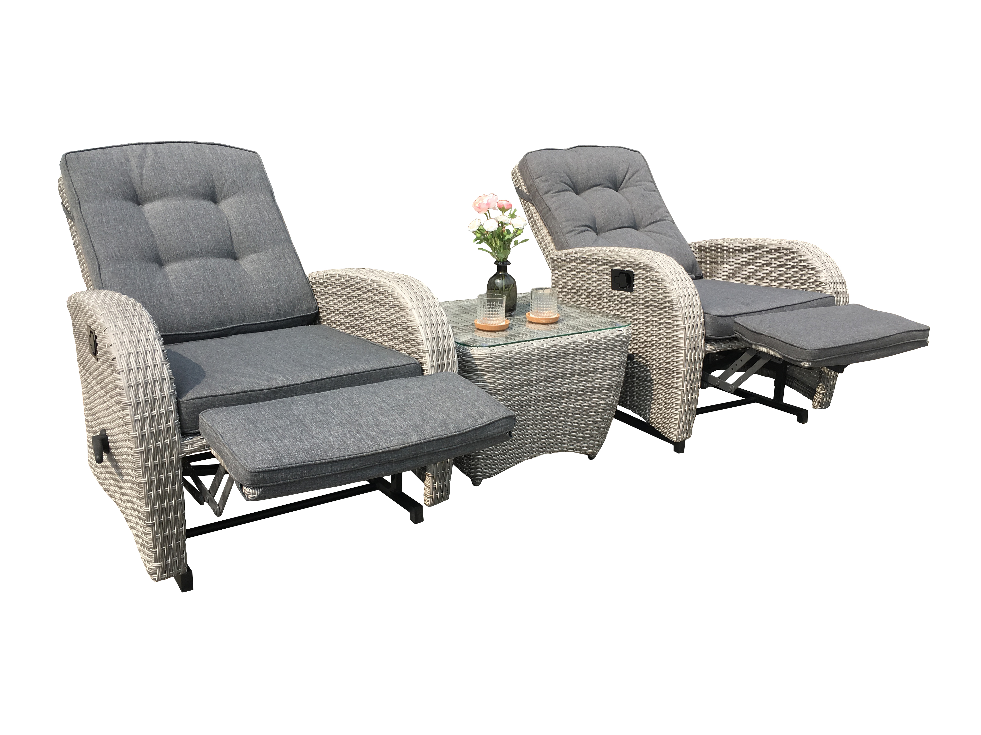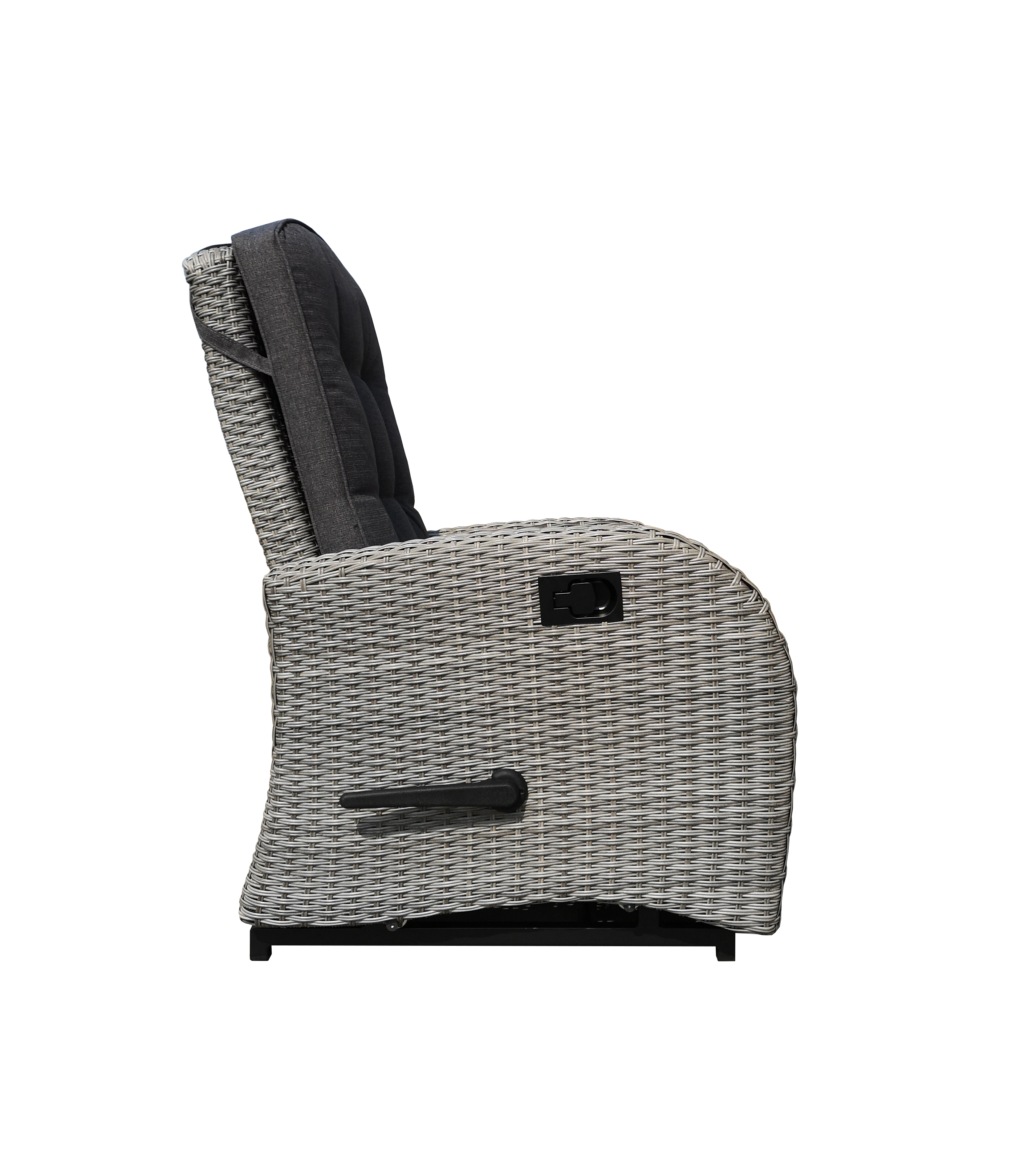 The Bromo Lounge Recliner With Footrest is equipped with a foot pedal that can be extended at any time. The extension operation can be performed using the switch on the right side of the chair. It can stretch your legs and offer true relaxation! When it is not suitable, it can be placed under the chair to save space. This rattan chair features all-weather wicker and a sturdy steel frame, capable of withstanding up to 1,000 hours of ultraviolet radiation, ensuring long-lasting durability and a bright appearance. It can be paired with a side table with tempered glass on the top, which is very suitable for daily relaxation.