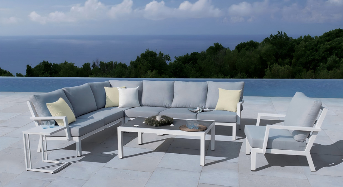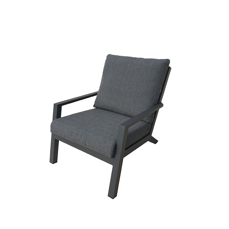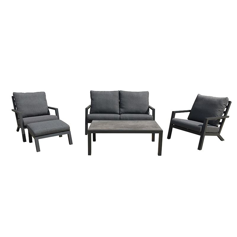 This modern and minimalist Lazy outdoor sofa set, with its calm color scheme, can easily blend into small and medium-sized Spaces such as balconies, courtyards or terraces. A single sofa is placed on each side of the central double sofa to create a conversational atmosphere, or each chair can stand alone as a reading corner. The thick light grey seat cushion and backrest are made of waterproof fabric, providing a comfortable sitting experience. The black straight-line frame is simple and neat. Paired with a movable footstool and a square coffee table, it combines socializing and relaxation, making it a practical choice to enhance the outdoor leisure experience.