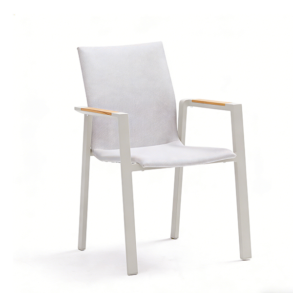 Elevate Your Outdoor Space with the Ligne Elegante Chair Crafted for the discerning outdoor enthusiast, the Ligne Elegante Chair is a masterclass in modern design, seamlessly blending enduring durability with refined comfort to redefine your al fresco living. Sleek, Weather-Resistant Frame At its core, the chair features a lightweight yet robust light grey aluminum frame. Engineered to stand the test of time, this structure is meticulously crafted to resist rain, UV rays, and temperature fluctuations, maintaining its pristine finish year after year without fading, rusting, or warping. It’s a foundation built for both beauty and resilience, ensuring your investment remains as striking as the day you first placed it in your garden. Versatile Armrest Options The chair’s design offers a choice of armrests to suit your aesthetic: Natural Teak Accents: Opt for the warmth of natural teak armrest tops, which infuse the piece with organic elegance. The rich, grainy texture of the teak contrasts beautifully with the cool, matte metal frame, creating a tactile, inviting feel that bridges the gap between modernity and nature. Full Aluminum Armrests: For a sleek, monochromatic look, choose the full aluminum armrests. Their smooth, seamless surface enhances the chair’s minimalist lines, delivering a polished, contemporary feel that complements any modern outdoor setting. Colorful, Breathable Performance Fabric The seat and backrest are upholstered in a high-performance, UV-resistant mesh fabric, available in a curated palette of colors to match your personal style and outdoor decor. This material is engineered for outdoor living: it dries rapidly after rain or spills, is effortless to clean, and promotes exceptional airflow, ensuring you stay cool and comfortable even on the hottest summer days. Whether you prefer a crisp white, a calming blue, or a vibrant accent hue, the fabric options let you infuse personality into your space while retaining the chair’s timeless appeal. Minimalist Aesthetic With its clean, uncluttered lines and a neutral color palette, the Ligne Elegante Chair effortlessly integrates into any outdoor environment. Whether placed on a contemporary urban patio, a sun-drenched coastal garden, or a tranquil backyard retreat, it acts as a versatile statement piece—one that doesn’t just provide seating, but elevates the entire space with a sense of understated sophistication. Transform Your Outdoor Sanctuary From leisurely mornings sipping coffee as the sun rises, to elegant evenings entertaining under the stars, the Ligne Elegante Chair transforms your outdoor area into a sanctuary of style and relaxation. It’s more than just furniture; it’s an invitation to savor every moment in a space that reflects your refined taste and love for the outdoors.