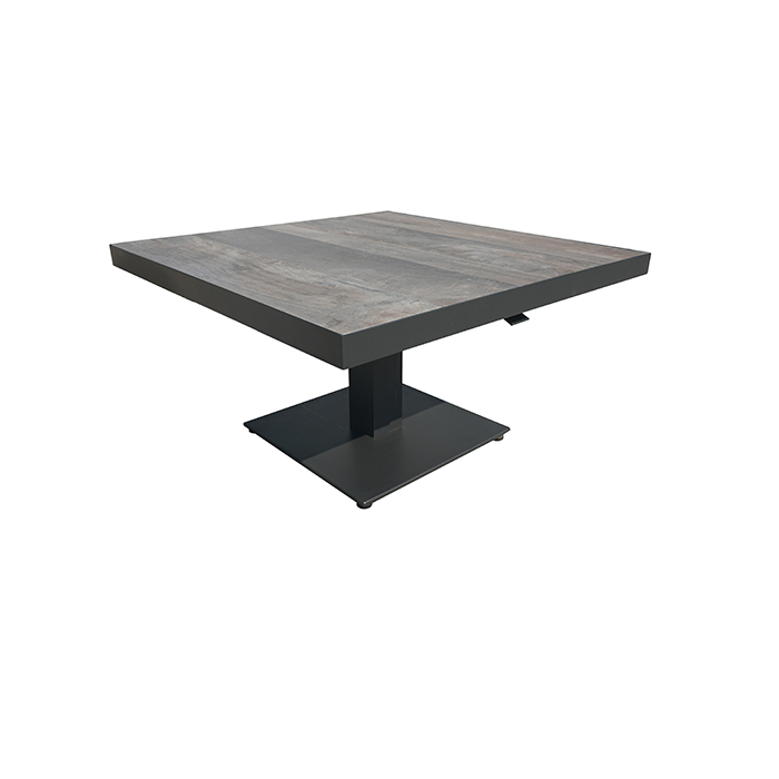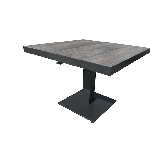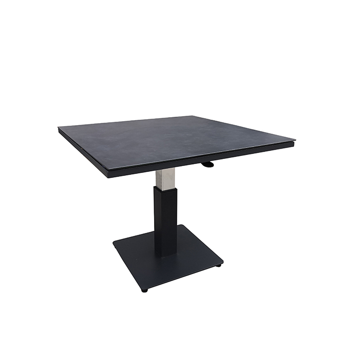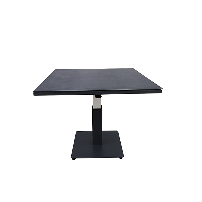 The Manual Height-adjustable Table is a multi-functional table that can be utilized in many scenarios. As the main table in the restaurant, its square design can compactly accommodate four people, making it suitable for small-sized families for daily three meals. The stable metal base and spacious desktop provide ample operating space for home office work or study, allowing for the placement of computers, books and other items. It is suitable for use as a temporary workstation in the corner of a study or living room. The simple design can be arranged in batches and is suitable for cafes and restaurants. It provides temporary office or rest functions for the hotel lobbylounge area. The modern design integrates a high-end space atmosphere. The dark color is dirt-resistant and has a good texture.