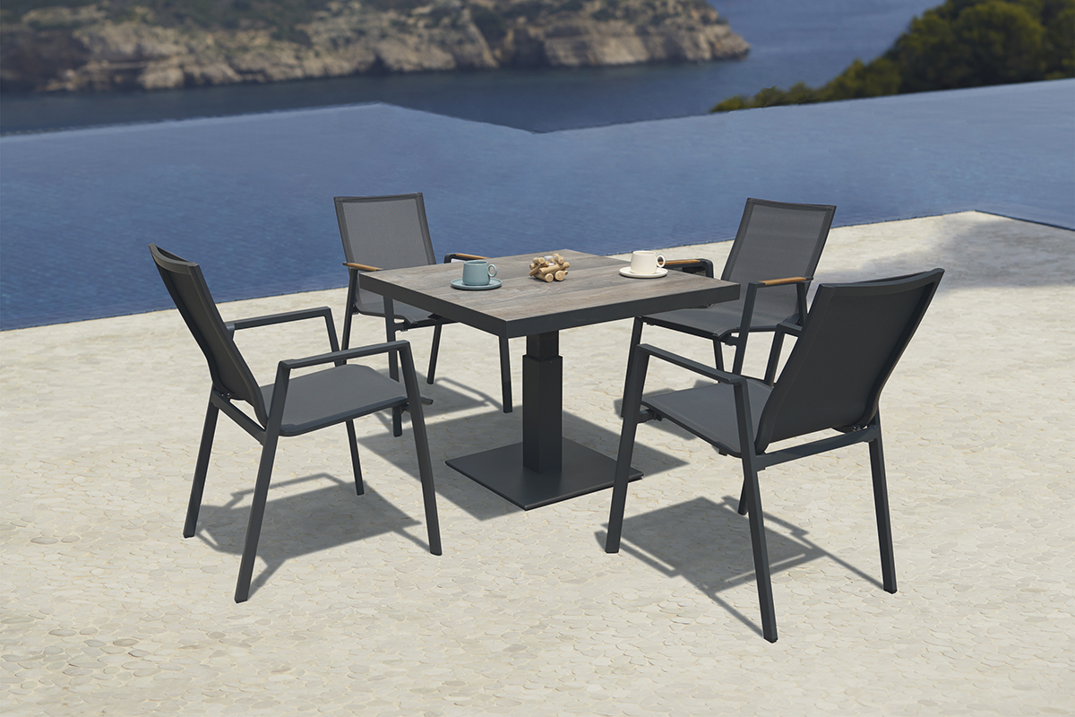 Product Introduction The Oppsalvik Pop-Up Table features a rust-proof aluminum frame and a burnt stone top, combining rust resistance with easy maintenance. Its height-adjustable design allows you to fine-tune the table to achieve the perfect lazy Angle, whether it's morning or sunset cocktails - an elegant companion to enhance relaxation at every moment. The Breathability Textilene Dining Chair offers ergonomic comfort and breathability. It's super light and easy to move. This anti-stain fabric can be wiped clean effortlessly. When not in use, these chairs can be neatly stacked, saving storage space.