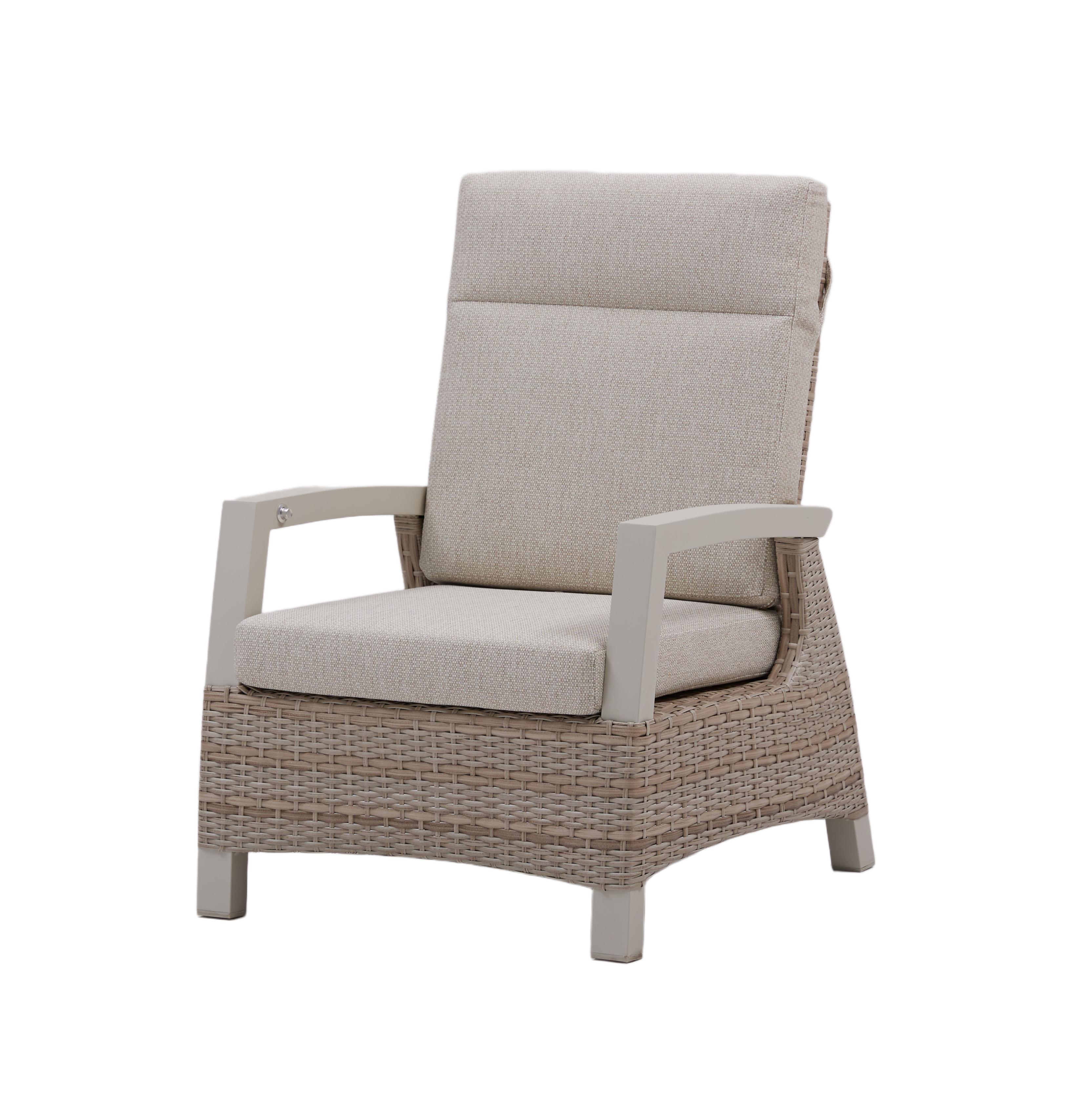 Ergonomic adjustable backrest The single-person sofa chair adopts a segmented adjustment structure. The backrest angle can be smoothly adjusted within the range of 105° - 160°. From sitting upright for reading, semi-reclining for rest, to lying back for relaxation, it can adapt to different posture requirements in all scenarios. The thick and high-elastic sponge-filled backrest can conform to the curvature of the spine, distribute pressure on the back, and remain comfortable even after long-term use, enhancing the user experience and the willingness to repurchase. Humanized adjustment button design The adjustment buttons are set at the golden position at the front end of the right armrest, following the ergonomic movement line. With just one click, the backrest angle can be switched. Elderly and children can also operate it easily, making the relaxation experience more convenient. Anti-UV high color fastness eco-friendly rattan weaving Selected with color fastness ≥ 6 and anti-ultraviolet grade UPF50+, it has withstood outdoor exposure tests for 5 years without fading or cracking, and has strong weather resistance. It is suitable for use in various climate regions worldwide, significantly reducing maintenance costs after sales. Dual stable seat cushion fixation system The back of the seat cushion is equipped with a high-density double shoulder straps fixation structure. During daily use or cleaning, the seat cushion is less likely to shift or slip, which not only improves the stability of use but also extends the service life of the seat cushion.